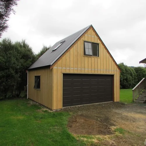 The Makarau Loft Garage has a great sized double garage with an open loft above . The garage downstairs can be used as a workshop, garaging or hobby room. While upstairs could be used as a sleep out, office or for any number of purposes. A blank canvas to customize as you see fit.